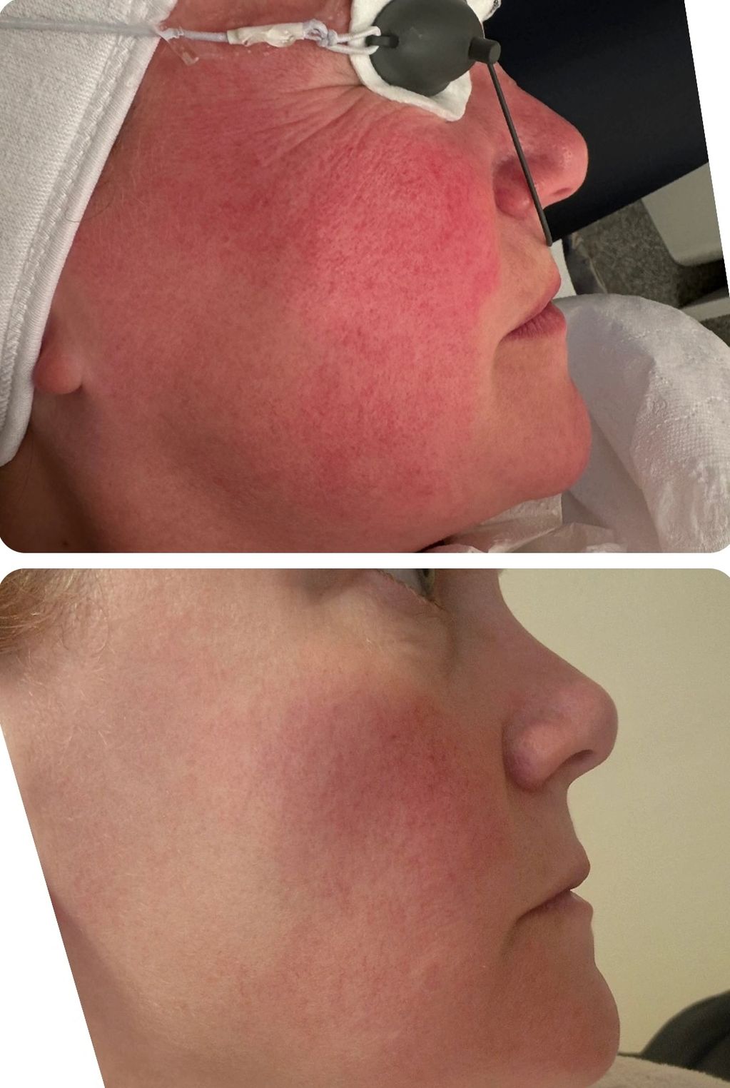 Laser treatments can help break up the reddened cheeks and nose caused by rocasea. You will need 3-6 treatments every 4 weeks and then maintenance to keep it at bay.